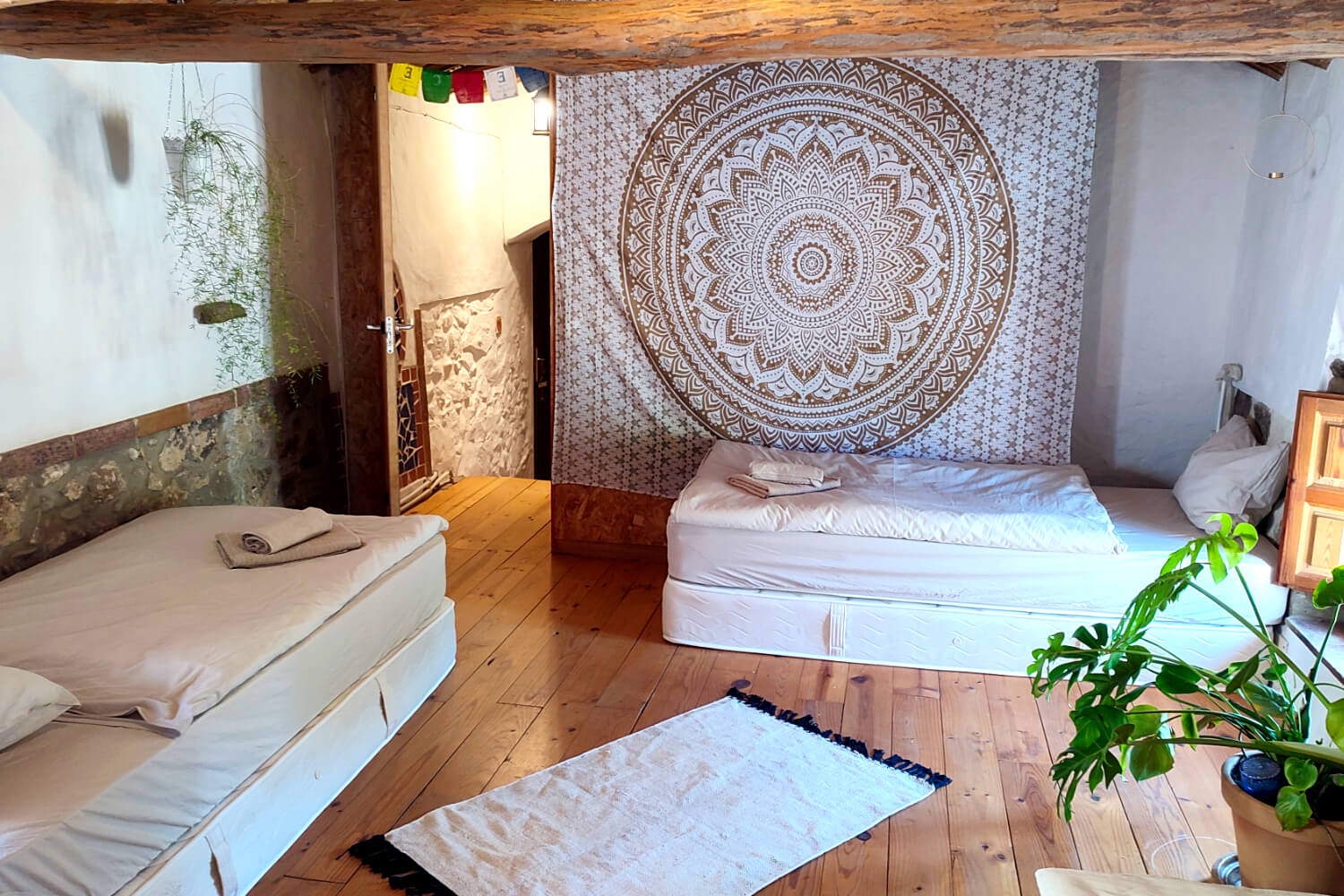 - a shared group dormitory (with 4 mattresses and shared bathroom)